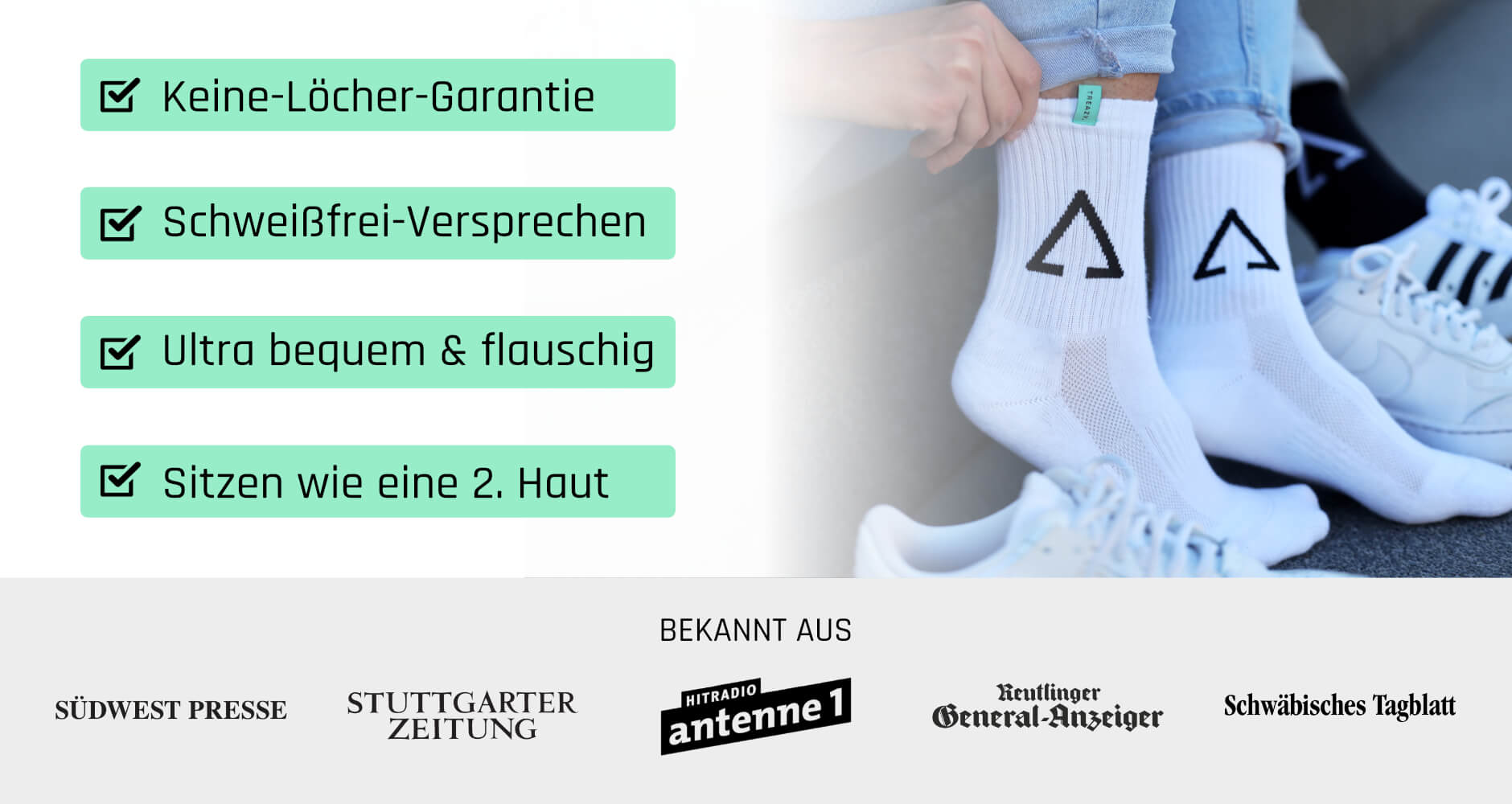 Lieblingssocken-Set Farbmix (12 Paar)Lieferumfang: 6 Paar Tennis Socken (3x Weiß + 3x Schwarz) & 6Paar Sneaker Socken (3x Weiß + 3x Schwarz)✔️ Sohlenverstärkung #Lochfrei✔️ Mit Sicherheit warme & trockene Füße #Schweißfrei✔️ Sitzt wie eine zweite Haut #Blasenfrei✔️ Optimale Passform #KeinEinschneiden✔️ Super bequeme Bio-Baumwolle✔️ Nachhaltig & fair✔️ Made with ♥ in...