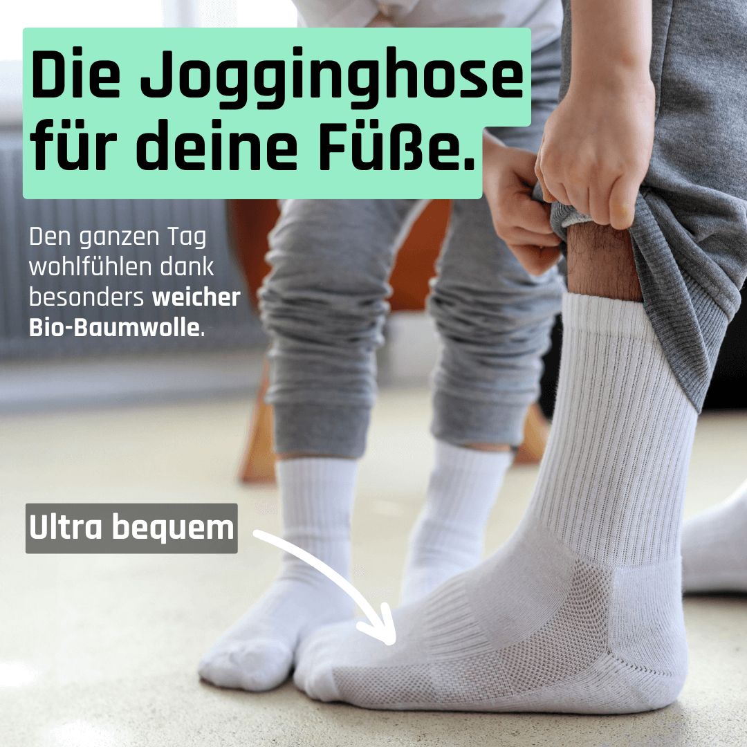 Es gibt viele Tennissocken! Wenn du diese anziehst, willst du allerdings keine anderen mehr! Wie eine zweite Haut passen sie sich deinen Füßen an. Die super weiche Bio-Baumwolle lässt dich wie auf Wolken laufen. Schweißfüße, Blasen oder Löcher? Kommt uns nicht in die Socke! Nachhaltig und fair produziert in Portugal. Eine Super-Socke? Wir finden schon!